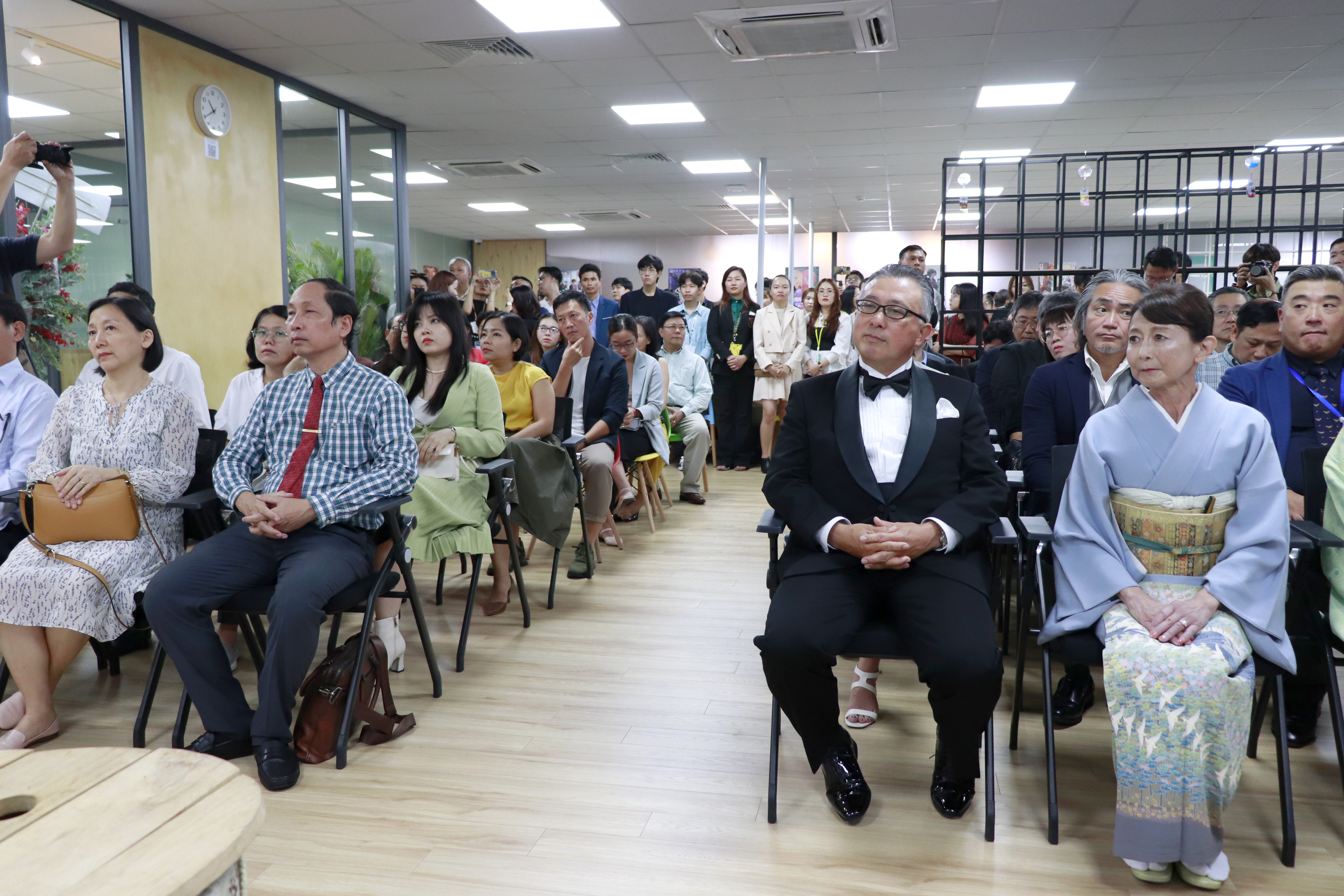 The grand opening was attended by many distinguished guests, including Mr. Vu Anh Tuan – Secretary of the Ho Chi Minh City Computer Association, Mr. Mitsunobu Seiji – Director of Hibari Vietnam, Mr. Miyazaki Yuji – Vice Director of Studio Hibari Japan, along with department heads from Hibari Japan, and actress Diem My 9x. The presence of the family members of Hibari Vietnam staff added a warm and meaningful touch to the event.